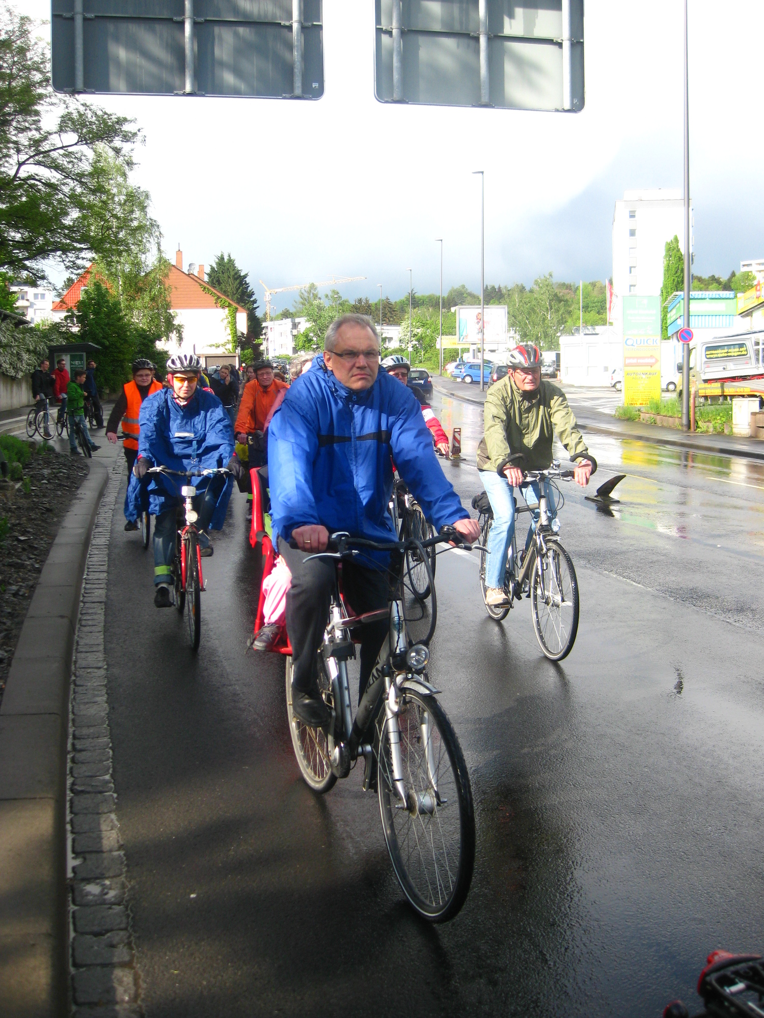 Er hofft, dass es diesmal nicht nur bei Lippenbekenntnissen bleibt und er nicht erst mit 64 eine sichere Radstrecke nach Würzburg befahren kann. Der Versbacher Fahrradsonntag wird von mehr als 20 Organisationen parteiübergreifend unterstützt. Katholische und Evangelische Kirche haben mit möglichst autofreien Gottesdiensten den Versbacher Fahrradsonntag eingeläutet. Alle Versbacher Elternbeiräte (Grundschule, Kindergärten) haben sich zur Unterstützung entschlossen. Bei besseren Wetter, so meint Arbeitskreissprecher Hart, wären sicher wieder mehr als 300 Demonstranten an der Protestfahrt mitgefahren. Der Unmut in Versbach und Umgebung über die mangelhafte Strecke ist groß. Die 150 die trotz des starken Regens kamen zeigen dies deutlich.