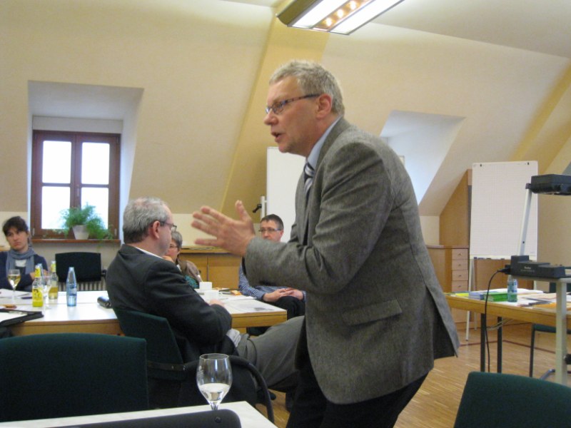 Seelsorger sind mit der Tatsache konfrontiert, dass Ehen bisweilen übereilt oder gar leichtfertig beendet werden. Dass aber auch Menschen, deren Ehe gescheitert ist, ihre Kirche ihnen gegenüber als hartherzig und umbarmherzig erleben, beispielsweise durch den Ausschluss von den Sakramenten, wenn sie wieder heiraten. Diesem Spannungsfeld spürten die Seelsorgerinnen und Seelsorger des Dekanates Würzburg rechts des Mains bei ihrem Studientag am 13. März 2012 in Gadheim nach. Der Referent, Dipl.-Theol. Klaus Schmalzl, erweiterte die Sichtweise aus seinem reichen Schatz an Erfahrung als Ehe-, Familien- und Lebensberater, aber auch aus seiner Tätigkeit als Diözesanrichter am kirchlichen Ehegericht. Dass viele Ehen "kampflos preisgegeben" werden, ist ein Trend unserer Zeit. Das Durchtragenkönnen von Durststrecken ist schwierig geworden. 60 % aller Scheidungen seien überflüssig. Es ist aber auch eine Frucht unserer Zeit, dass es verdammt schwer geworden ist, eine Ehe zu leben. Gründe wie befristete Arbeitsverhältnisse, die Anforderungen an Mobilität und Flexbilität tun hier ihr Übriges. Eine Scheidung ist immer der letzte Ausweg, so Schmalzl. Für Kinder stellt dies oft das Ende ihrer Kindheit dar. 60 % aller Zweitehen sind ebenfalls zum Scheitern verurteilt. Der Preis für dieses Scheitern ist ein großes Tabuthema in unserer Gesellschaft. Wiederverheiratete Geschiedene fühlen sich als "Katholiken zweiter Klasse", da sie vom "Heiligsten ausgeschlossen werden, das wir haben" (Walter Kardinal Kasper). Aufgabe unserer Gemeinden ist es, diese in ihrer Lebenssituation anzunehmen. In der orthodoxen Kirche ist nach dem Scheitern einer Ehe eine Wiederverheiratung mit dem Segen der Kirche möglich; auch wenn diese zweite Ehe nicht mehr sakramental ist. Eine "Krücke", oder positiv gesagt "Brücke", stellt die kirchliche Eheannulierung dar. Etwa 90 % aller Antragssteller sind damit erfolgreich. Klaus Schmalz ermunterte die SeelsorgerInnen, betroffenen Menschen dazu Mut zu machen. Beim kirchlichen Eheannulierungsverfahren wird geprüft, ob zum Zeitpunkt der Heirat die Voraussetzungen für eine christliche Ehe gegeben waren. In einem zweiten Teil wurde der Frage nachgegangen, wie in einer liturgischen Feier das Scheitern einer Beziehung zu Gott gebracht werden kann.