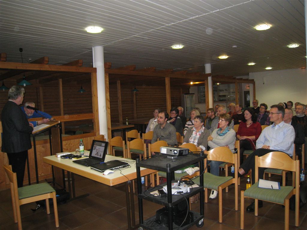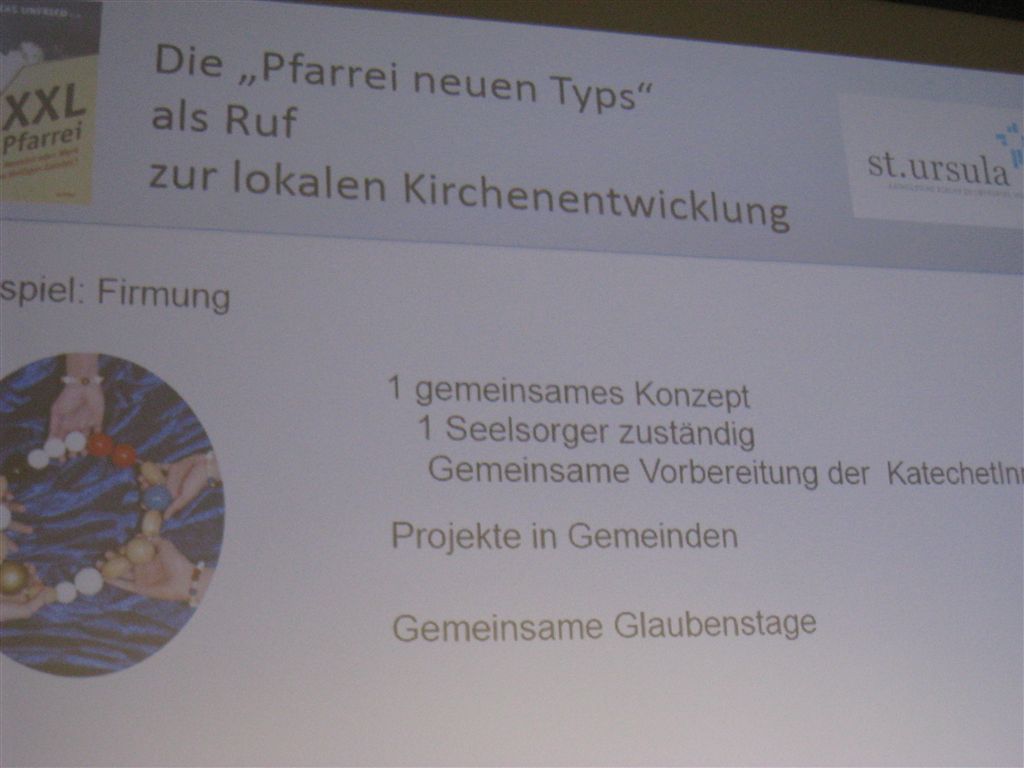 Das Thema beschäftigt Hauptamtliche und Ehrenamtliche: Wie geht es weiter mit der Kirche vor Ort? Auch im Stadtdekanat Würzburg werden seit einiger Zeit diesbezügliche Überlegungen angestellt. Diese wecken die unterschiedlichsten Befürchtungen, Ideen und Erwartungen. Da war es gut, dass bei der Herbst-Vollversammlung des Dekanatsrates am Donnerstagabend, 13. November 2014, im Matthias-Ehrenfried-Haus, Pfarrer Andreas Unfried, Leiter der XXL-Pfarrei St. Ursula, Oberursel, am nördlichen Stadtrand von Frankfurt, zu Gast war, um über seine Erfahrungen zu berichten. Groß war die Aufmerksamekit und lebendig die Nachfragen bei den Würzburger Räten. Pfarrer Unfried erläuterte, worum es ihm und seinem 10-köpfigen Pastoralteam geht: Um Beteiligung und Transparenz; um die Gewinnung von Ressourcen für die Seelsorge; um das Aufbrechen der Verkernung der Gemeinden und darum, dem gesellschaftlichen Bedeutungsverlust von Kirche und Glaube entgegenzuwirken. Ziel sind selbsttragende Gemeindestrukturen, die weniger abhängig von Hauptamtlichen sein sollen. "Wir brauchen eine andere Kultur des miteinander Christseins. Pfarrer und Hauptamtliche dürfen nicht das persönliche Christsein abnehmen". Voraussetzung einer Mammutgemeinde ist auch die Vereinfachtung der Verwaltungssituation, so Unfried. Für ihn ist die Kirche der Zukunft eine Kirche der Freiwilligkeit.
