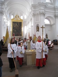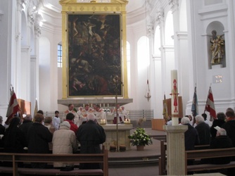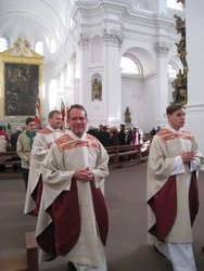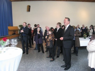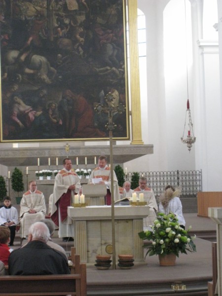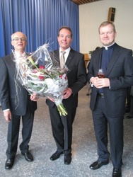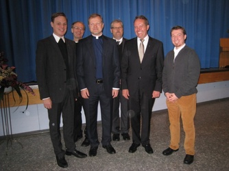 Die Sonne strahlte über Würzburgs Dächer und Kirchtürme am Sonntag, 28. Oktober 2012. Die Menschen strömten nicht nur zum "Mantelsonntag" in Würzburgs City, sondern auch am späten Vormittag in die Stift Hauger-Kirche. Dort wurde Dr. Petro Müller von Dompfarrer Dr. Jürgen Vorndran als Pfarrvikar in die Pfarreiengemeinschaft Würzburg-Innenstadt eingeführt. Für ihn sei dies ein Freudentag, so der Dompfarrer, da das Pastoralteam mit Pfarrvikar Christan Stadtmüller, Gemeindereferent Joachim Schroeter und den beiden Diakonen nun weitere Unterstützung bekomme. Dr. Müller wird mit 50 % für die Katholiken der Inennstadt -schwerpunktmäßig für die Pfarreien St. Johannes in Stift Haug und St. Gertraud- tätig sein, die anderen 50 % nimmt er das Amt des Ökumenereferenten der Diözese Würzburg wahr. Herzlich begrüßt wurde der neue Seelsorger im Gottesdienst vom gemeinsamen Pfarrgemeinderat der Pfarreiengemeinschaft, der Kirchenverwaltung Stift Haug, den MinistrantInnen und der Kinderkirche. Die Begrüßung fand ihre Fortsetzung im Matthias-Ehrenfried-Haus. Pfarrerin Susanne Wildfeuer von der evangelischen Johannisgemeinde freut sich, dass im Stift Hauger-Pfarrhaus nun wieder Leben ist.