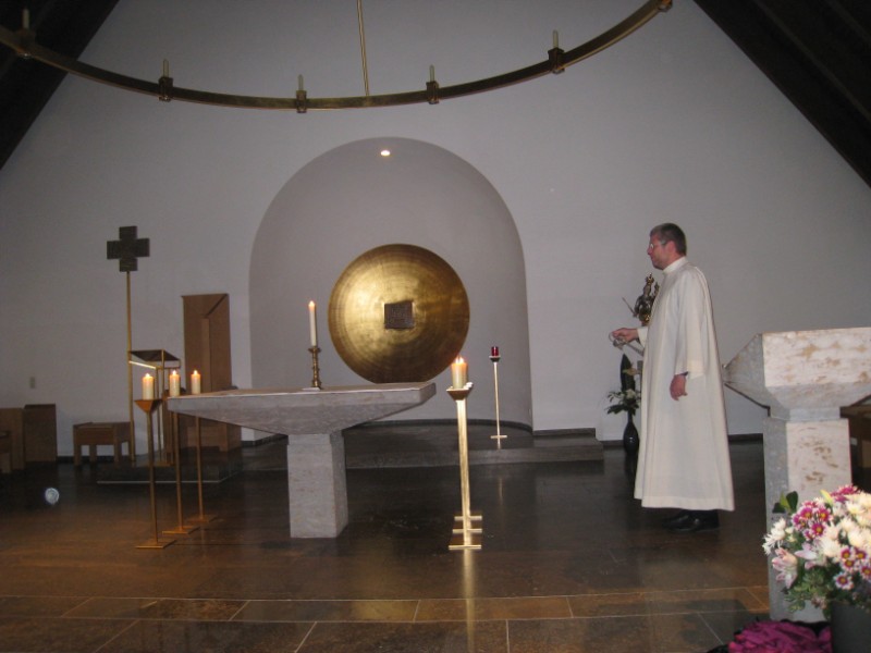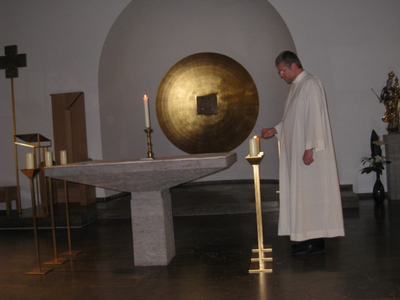 Viele unserer Gottesdienste werden als zu wortlastig empfunden. Der Gottesdienst wird mehr Katechese als Liturgie. Dabei stimmen wir in jeder Messfeier ein in den "Gesang der Engel und Heiligen" und nehmen teil an der himmlischen Liturgie. Bei der Fortbildung für Kommunionhelfer, Lektoren und Gottesdienstbeauftragten am Samstag, 19. November 2011, im Exerzitienhaus Himmelspforten ging Michael Pfeifer, Beauftragter für Liturgie und Kirchenmusik im Dekanat Aschaffenburg-Statt, der Frage nach, wie unsere Feiern aussehen müssen, dass sie Raum bieten für die Gegenwart Gottes. In der Feier der Gemeinde Vesper konnten die TeilnehmerInnen erleben, wie auch ein Gottesdienst ohne Eucharistiefeier "das Herz dem Himmel öffnen kann".