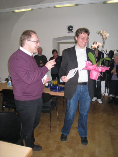 Mit einem weinenden Herzen wurde am Donnerstag, 16. Dezember 2010, die "gute Fee" des Diözesanbüros, Frau Elisabeth Fiederling, verabschiedet, die ab 1. Januar ihre Altersteilzeit beginnt. Frau Fiederling war 35 Jahre als Reinigungsfachkraft im Dienst der Diözese Würzburg tätig; zunächst im Kilianshaus, danach im Kilianeum. Der Direktor des Bischöflichen Jugendamtes Thomas Eschenbacher sah in der langen Dienstzugehörigkeit ein Stück gelebte Kontinuität und Treue. "Man kann auch bei der Kirche 35 Jahre lang arbeiten und behält sein jugendliches Aussehen". So konnte Pfarrer Eschenbacher schwer glauben, dass Frau Fiederling fast das Rentenalter erreicht habe. Seit dem Umzug des Diözesanbüros im Jahr 2005 ins Kilianeum, genossen die Mitarbeiterinnen die Zuverlässigkeit und menschliche Herzlichkeit von Elisabeth Fiederling.