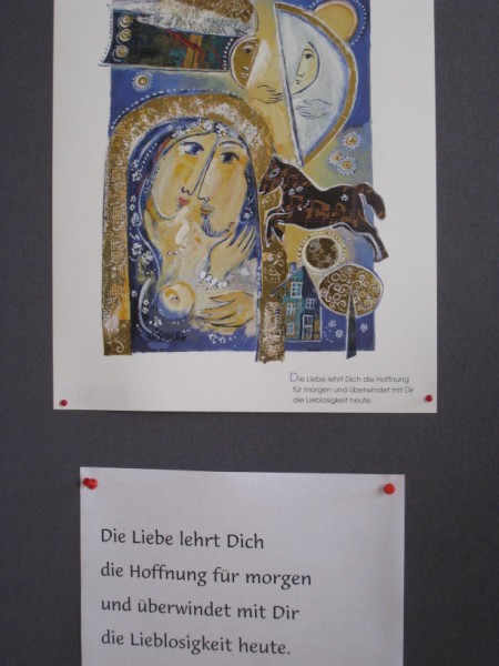 Am Valentinstag, Samstag, 14. Februar 2009, brachte Pastoralreferent Hermann Simon die Teilnehmerinnen und Teilnehmer auf die Spur des großen Liebenden. Ausgehend vom Gedicht von Gudrun Pausewang "Zweifelst du? Ich glaub für dich. Zweifle ich, glaubst du mir mich. Schlaf! Ich wache. Wach! Ich ruh. Tröstlicher Schimmer: Einer von uns, ich oder du, einer bläst immer in die Glut. Das zu wissen, tut gut". Liebe ereignet sich immer in der Begegnung. Dabei ist Liebe nicht das Bild, das ich mir von ihr gemacht habe, sondern die Wahrheit, die dieser bestimmte Mensch ist. Ebenso sucht echte Spiritualität Gott, nicht das Gefühl. Das Größte in Gottes Schöpfung ist der Mensch, dem der Auftrag gilt "liebt einander".