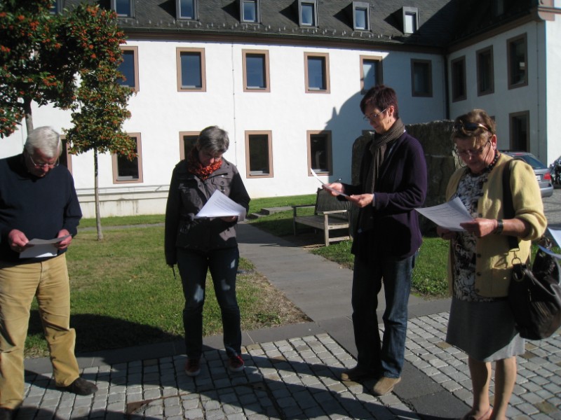 In einer zunehmend säkularer werdenden Welt fällt das Reden mit und über Gott schwerer. Dekan Dr. Jürgen Vorndran und Alexander Jansen verstanden es, die Teilnehmer bei der Fortbildungsveranstaltung am Samstagnachmittag, 15. Oktober 2011 im Exerzitienhaus Himmelspforten für das Sprechen mit Gott zu sensibilisieren, indem sie die Schatztruhe des Gebets öffneten. Dabei reichten die Beispiele von den Psalmen über mystische Texte des Mittelalters bis in die Gegenwart hinein. Praktische Übungen anhand eines Psalters und der Abschluss mit dem Singen eines "modernen Psalmes" rundeten den Nachmittag ab.