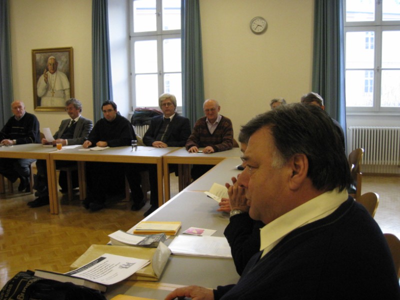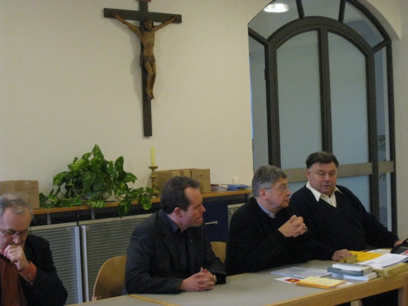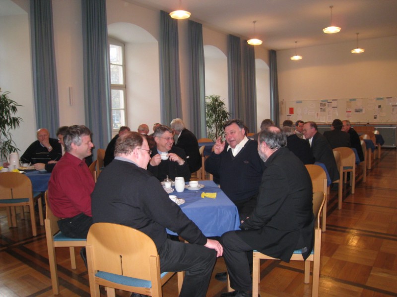 "Wir müssen Zeugnis geben von unserem Glauben und Mut haben, von Gott zu reden". Dies schrieb Regens Herbert Baumann den Seelsorgerinnen und Seelsorgern des Dekanates Würzburg links des Mains bei ihrem Informationsbesuch am 13. Januar 2009 im Priesterseminar in's Stammbuch. Nur wer bezeugt, dass in seinem Leben Gott anwesend ist, kann andere Menschen mit dieser Botschaft anstecken. Das Interesse der TeilnehmerInnen galt der Ausbildung der angehenden Priester im Priesterseminar und an der Universität. Lebens-, Glaubens- und Sprachenschule soll das einjährige Propädeutikum sein, das seit diesem Semester alle nordbayerischen Seminaristen in Bamberg absolvieren. Dieses geht dem eigentlichen Theolgiestudium voraus und will die Priesteramtskandidaten auf Studium und Seelsorge vorbereiten. Während der Zeit des Studiums leben die Seminaristen, seit Herbst zusammen mit den Bamberger Priesteramtskandidaten, im Würzburger Priesterseminar. Danach gehen alle nordbayerischen Seminaristen zur pastoralen Ausbildung nach Speyer, bzw. in die Pfarrgemeinden ihrer Diözese. Ab dem Wintersemester 2009/10 erfährt das Theologiestudium eine Neuordnung, das nach fünf Jahren mit dem Magister der Theologie abschließt. Regens Baumann bat die Anwesenden, in ihren Pfarreien, aber auch beim täglichen Breviergebet, um geistliche Berufe zu beten. Ebenso ludt er zur wöchentlichen Eucharistiefeier um geistliche Berufe am Montagabend in die St. Michaelskirche ein.