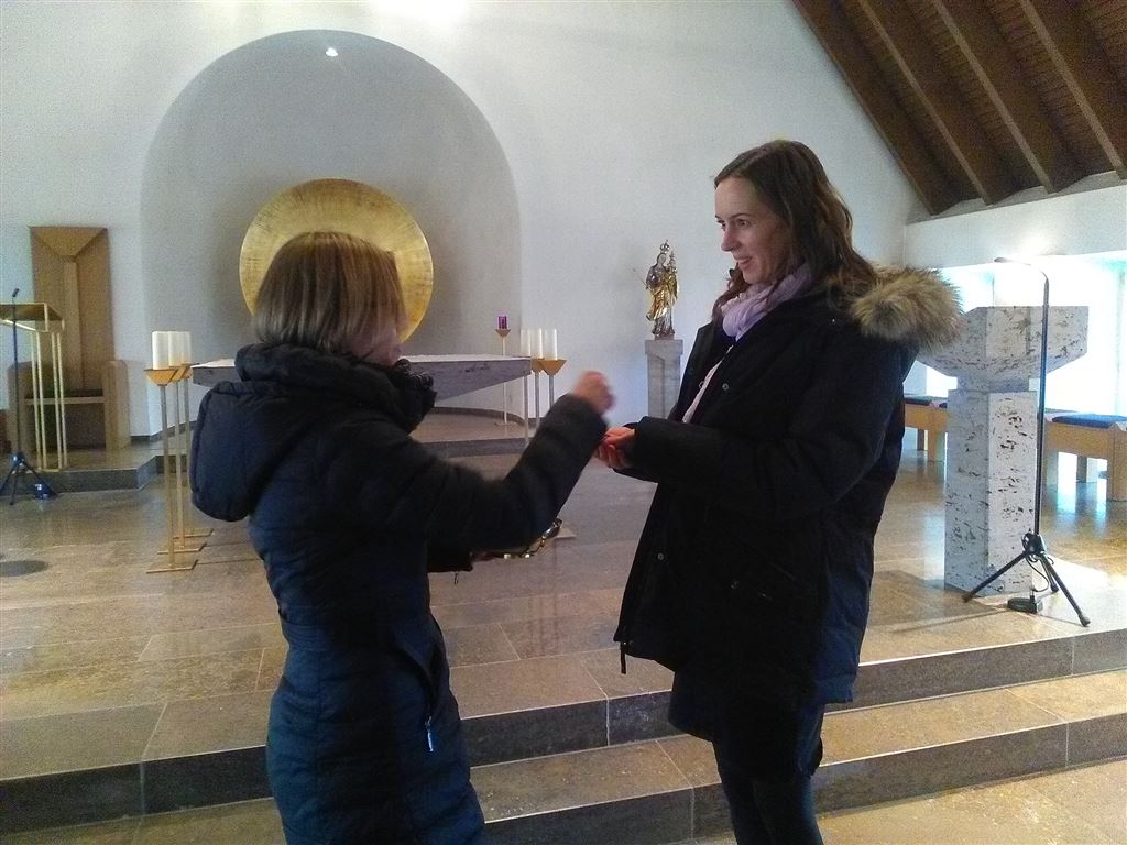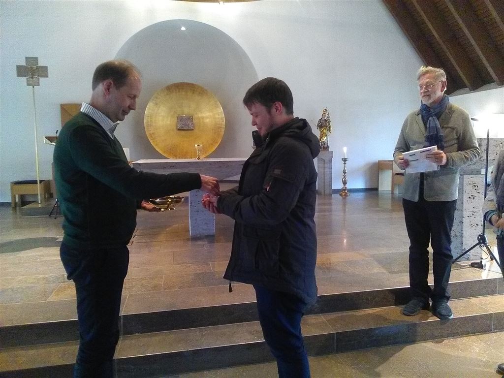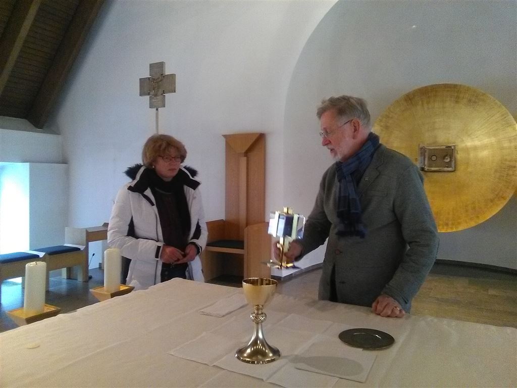 Wer zum ersten Mal als Kommunionspender, -spenderin tätig werden will, steht vor vielen Fragen: Wie reiche ich die Heilige Kommunion in beiderlei Gestalten? Wie bewege ich mich im Altarraum? Was ist bei der Krankenkommunion zu beachten? Die 21 angehenden Kommunionspender/innen brachten für den Einführungskurs am Samstag, 17. Februar 2018, im Exerzitienhaus Himmelspforten viele Fragen mit. Pfarrer Robert Borawski, Liturgiebeauftragter im Dekanat Würzburg rechts des Mains, verstand es, mit viel Sachkompetenz, aber auch mit Charme, die Damen und Herren auf ihren Dienst vorzubereiten. Stand am Vormittag eine Einführung in die Theologie der Eucharistie auf dem Programm, sio konnte am Nachmittag in der Hauskapelle geübt werden. Der am Tag zuvor neu ernannte Bischof von Würzburg, Dr. Franz Jung, war in den Pausen beliebtes Gesprächsthema.