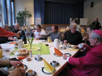 Die Pilger stärken sich beim Frühstück im Matthias-Ehrenfried-Haus