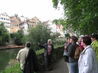 Ins Herz des Schwabenlandes ging der diesjährige Ausflug der Seelsorgerinnen und Seelsorger, der Pfarrhaushälterinnen und Pfarrsekretärinnen des Dekanates Würzburg rechts des Mains am 17. Juli 2012. Die alte Universitätsstadt Tübingen verbindet das Flair eines mittelalterlichen Stadtkerns mit dem Lebensgefühl einer jungen Studentenstadt. So waren die Würzburger Gäste beeindruckt vom über 500 Jahre alten Rathaus am Marktplatz, dem Evangelischen Stift, in dem sich Hölderlin, Schelling und Hegel eine Studierstube teilten und vom Anblick der malerischen Neckarfront mit den einzigartigen Stocherkähnen. Am Nachmittag ging es ins nur wenige Kilometer entfernte ehemalige Zisterzienserkloster Bebenhausen. König Friedrich I. von Württemberg ließ es Anfang des 19. Jahrhunderts als Jagdschloss ausbauen. Nach seiner Abdankung 1918 zog sich dessen Nachfolger Wilhelm II. ganz auf Schloss Bebenhausen zurück. Seiner Gemahlin Charlotte wurde es bis zu deren Tod 1946 zum Witwensitz. Im Gasthaus "Schwan" in Kürnach klang der gemeinsame Tag harmonisch aus.
