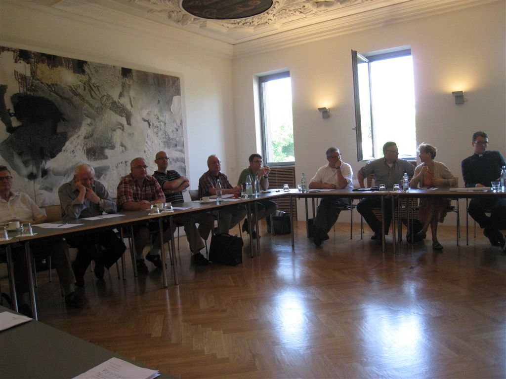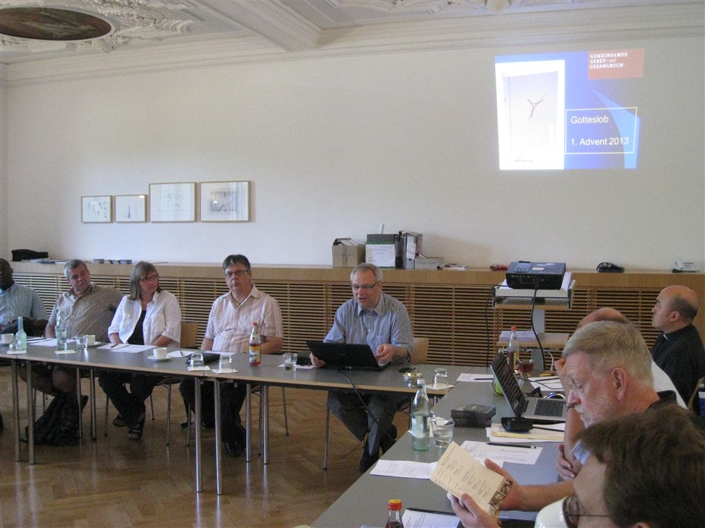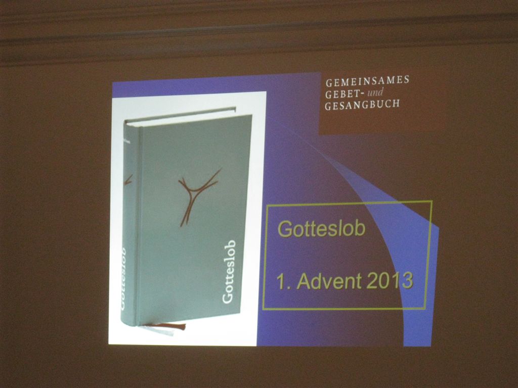 Am 1. Advent 2013 ersetzt ein neues Gotteslob das bisher gebräuchliche Buch von 1975. Seit ca. zehn Jahren wurde am GGB (Gemeinsames Gebets- und Gesangbuch) gearbeitet, das nun in 37 (Erz-)Diözesen des deutschen Sprachgebietes eingeführt wird. Grund genung, dass sich die Seelsorgerinnen und Seelsorger des Dekanates Würzburg rechts des Mains auf ihrem Studientag am Dienstag, 18. Juni 2013, im Exerzitienhaus Himmelspforten ausgiebig damit beschäftigt haben. Dr. Stephan Steger, Liturgiereferent der Diözese Würzburg, und Regionalkantor Bernhard Seelbach gaben dabei wertvolle Informationen und Impulse. Auch das neue Gesanbuch wird einen Stamm- und einen diözesanen Eigenteil haben. Neu ist, dass es zweifarbig sein wird. Ein "Lied des Monats" lädt ein, mit den Gemeinden neue Lieder einzuüben. Das Gotteslob will aber auch ein Hausbuch des Glaubens sein. Wie hier die Gläubigen motiviert werden können, zeigte am Nachittag Lucia Lang-Rachor, Begleiterin für Gottesdienstbeauftragte im Dekanat, auf. Das neue Gotteslob enthält viele wertvolle Impulse für das tägliche Leben. Denn, "wo zwei oder drei in meinem Namen versammelt sind, da bin ich mitten unter ihnen" (Mt 18,20).