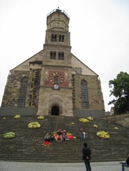 In die alte Salz- und Handelsstadt Schwäbisch Hall zog es die Pfarrer und hauptamtlichen Mitarbeiterinnen und Mitarbeiter am 15. Juni 2010. Bei einer Stadtführung ist die reiche Geschichte der ehemaligen Freien Reichsstadt lebendig geworden. Bereits 500 v. Chr. bis ins Jahr 1924 wurde in Schwäbisch Hall Salz produziert. Dem weißen Gold des Mittelalters verdankt die Stadt ihr heutiges Aussehen. Zu den Hauptsehenswürdigkeiten zählt zweifellos die Kirche St. Michael mit ihrer 53-stufigen Freitreppe. Die romanisch-gotische Kirche birgt in ihrem Innern viele Kunstwerke, die die früh eingeführte Reformation überlebten. Die Mittagspause nutzten viele, um die Sammlung Alte Meister in der Johanniterhalle zu bestaunen; wie die Kunsthalle für Moderne, Geschenk des Mäzens Reinhold Würth an die Stadt Schwäbisch Hall. Am Nachmittag stand die "Gottesburg" Comburg, ehemaliges Benediktinerkloster und Bollwerk der Ritterschaft, auf dem Programm. Sie erhebt sich wie eine Krone über der Stadt. Die Stiftskirche birgt mit dem romanischen Radleuchter und dem vergoldeten Antependium einen einzigartigen Kunstschatz. Nach der gesungenen Vesper ging es durch das frühsommerliche Hohenloher Land ins Taubertal, wo der Tag im Weinort Beckstein ausklang.
